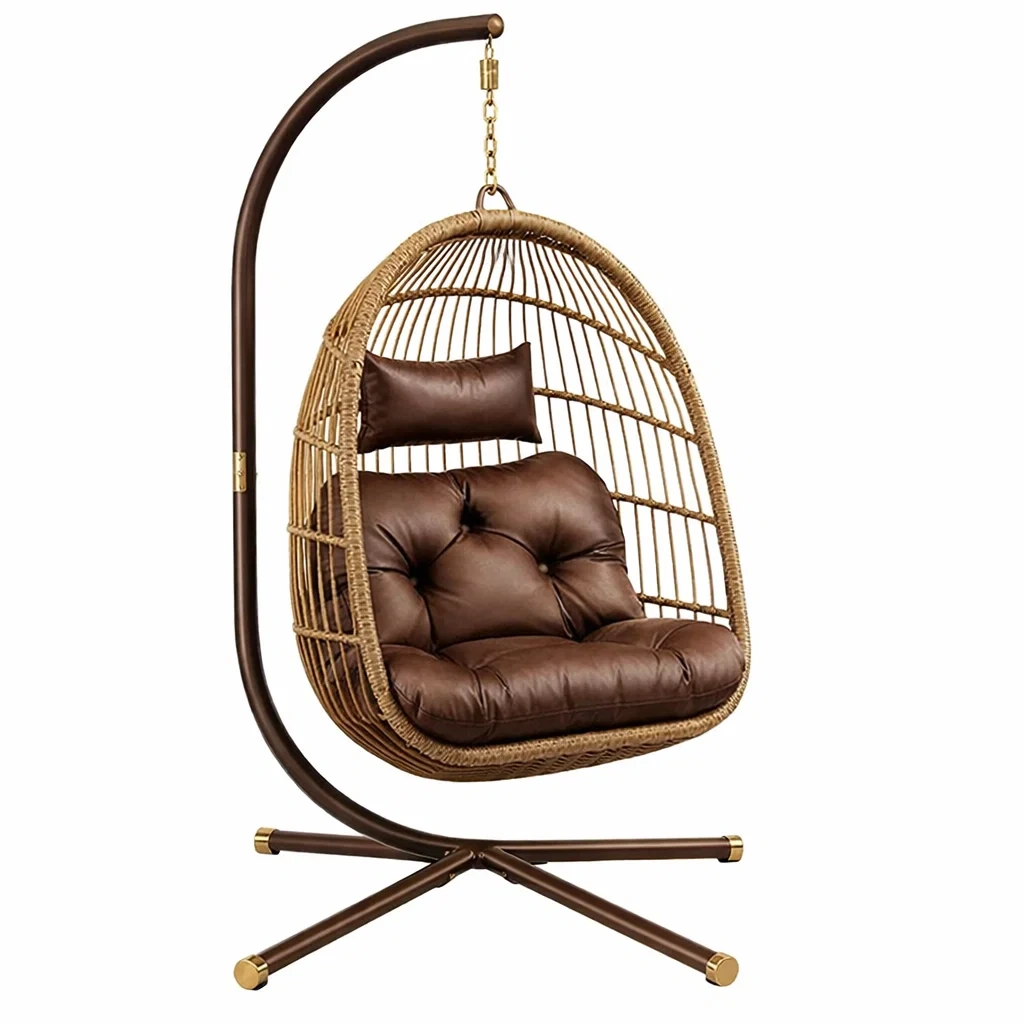 Fauteuil œuf suspendu en rotin synthétique avec coussin en similicuir