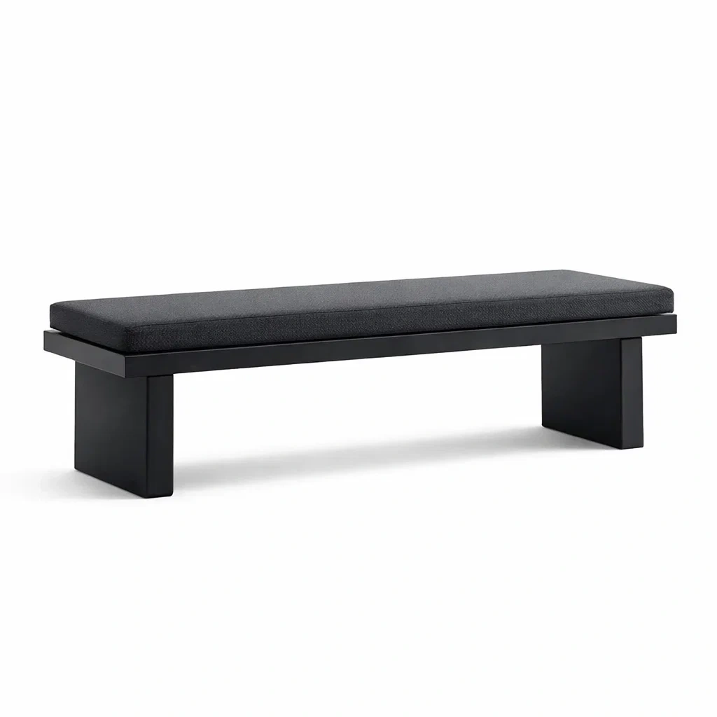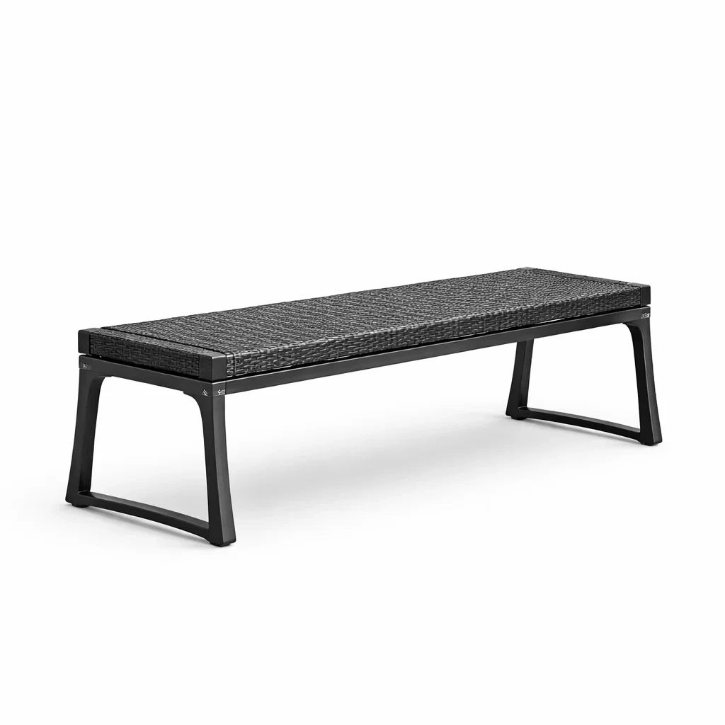 Banc en rotin synthétique et aluminium noir 160x40x45 cm