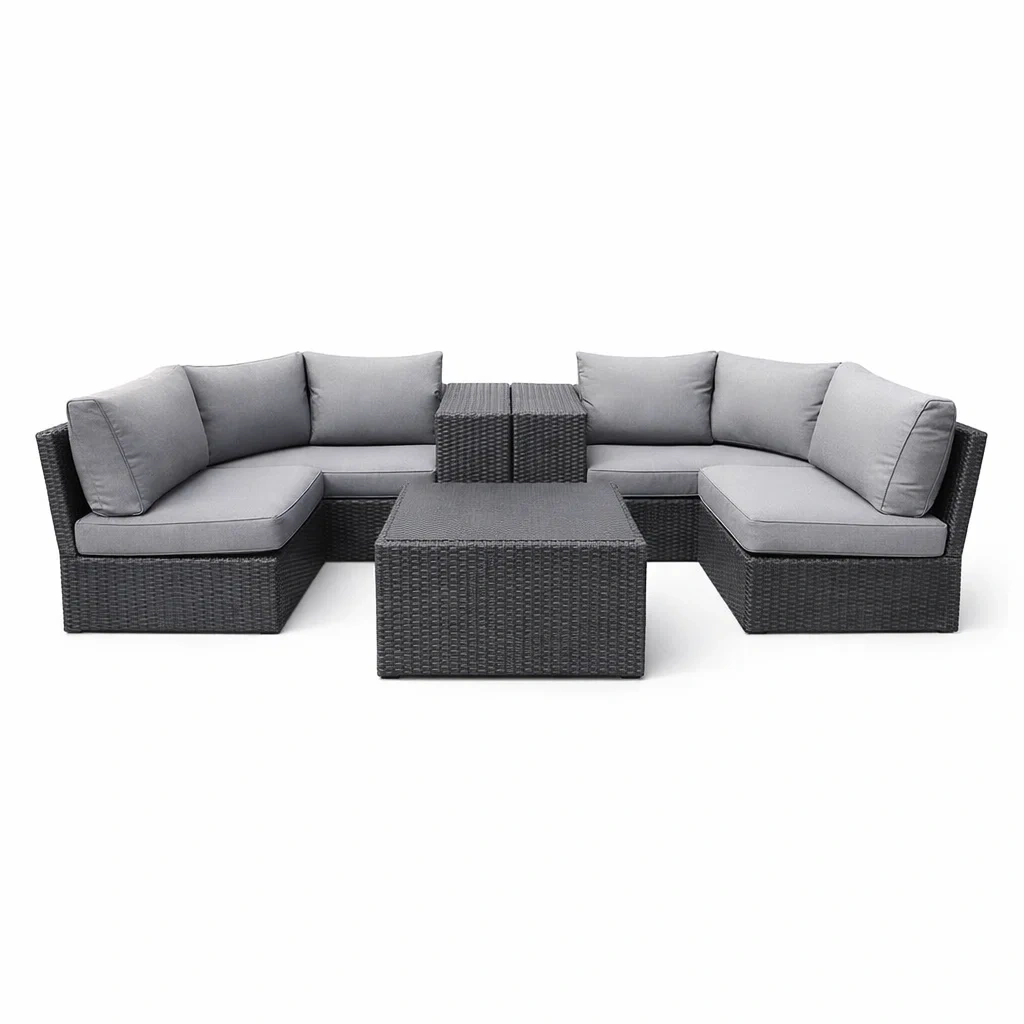 Ensemble de canapés d'angle modulaire en résine tressée gris avec coussins beige