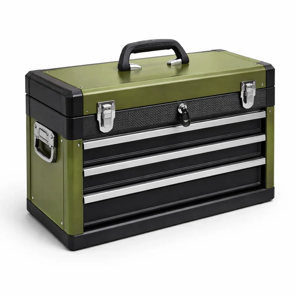 Boîte à outils en métal et plastique avec 3 tiroirs
