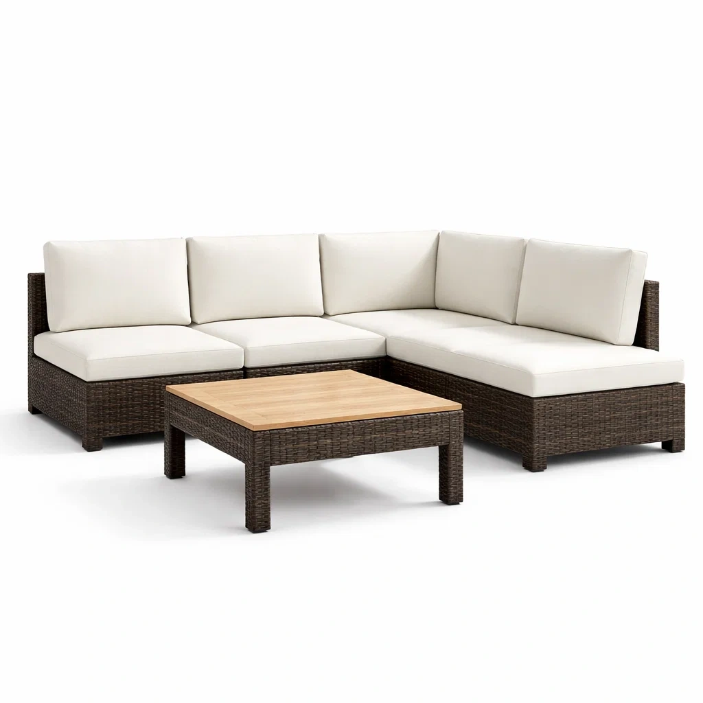 Ce produit comprend un canapé d'angle modulaire et une table basse.